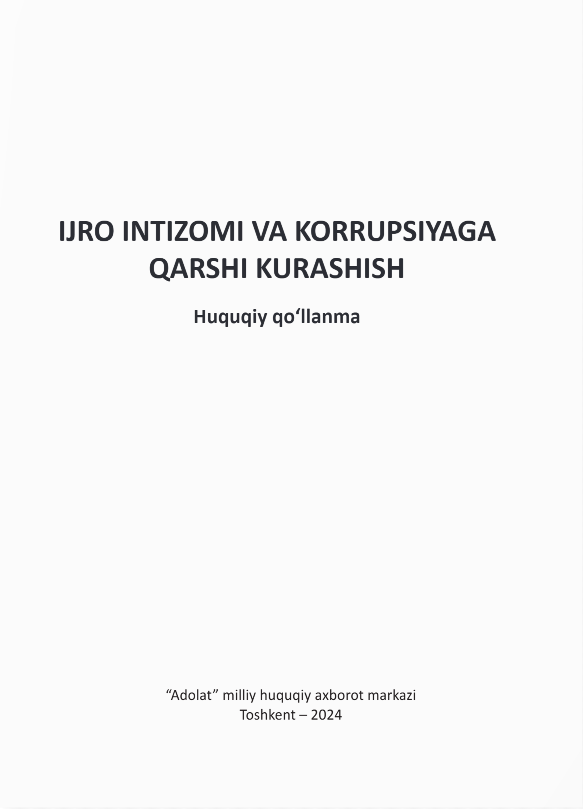 Mazkur qoʻllanma davlat organlari va tashkilotlarida ijro intizomini taʼminlash, uni yanada mustahkamlash, korrupsiyaga qarshi kurashish...